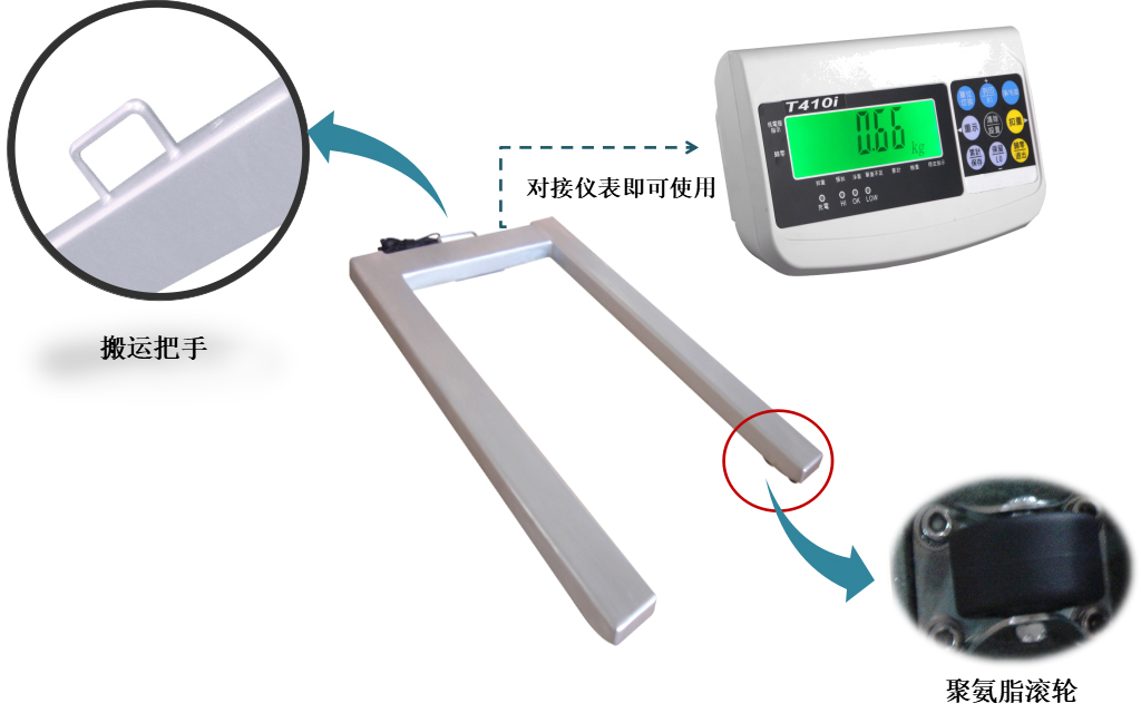◇ U型秤臺結(jié)構(gòu),裝有把手和滾輪,方便搬運。